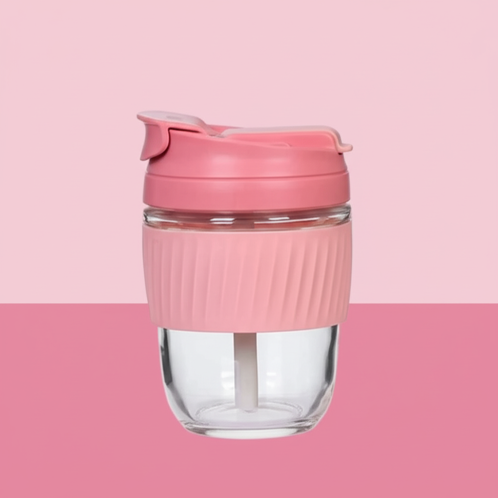 Product Name: Glass Tumbler with Airtight Lid and Straw Pack of 1, 300ml Travel Coffee Sipper Mug for Juice Cocktail Iced Tea Smoothie Hot Cold Drink Cup Home & Office (Small Shake) Random Colour